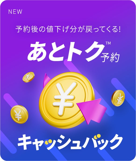 ホテル予約後に価格が下がった場合に自動で再予約し、発生した差額を現金でキャッシュバックする新機能「あとトク予約」もリリース。