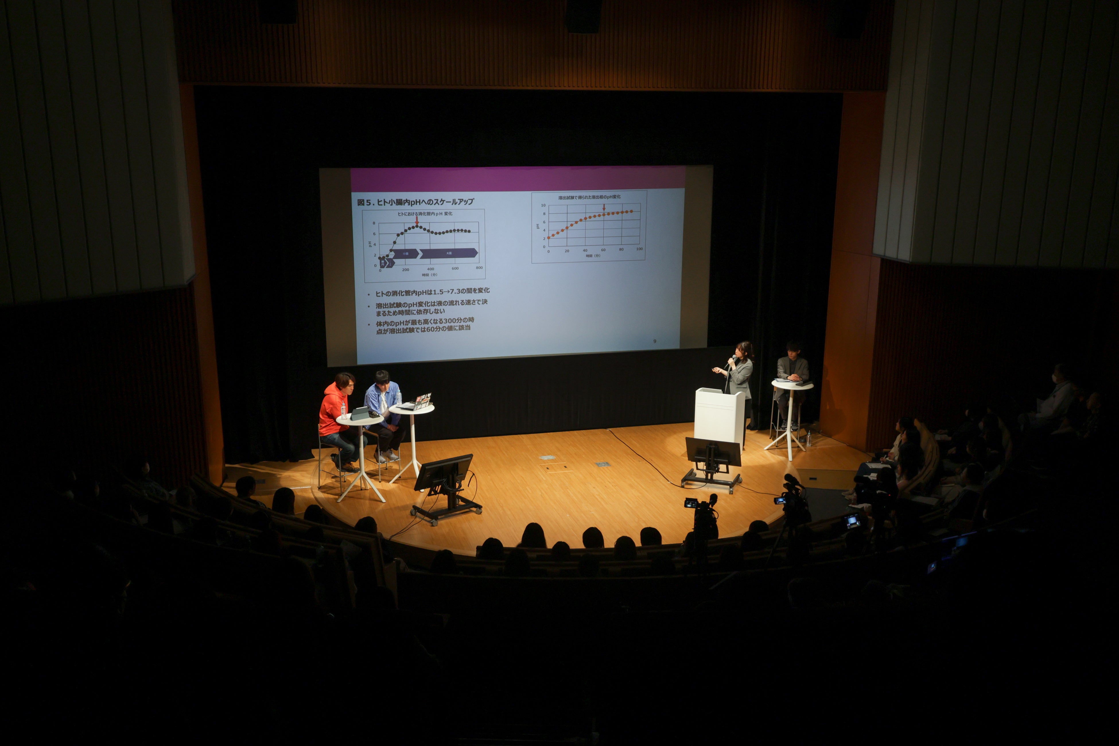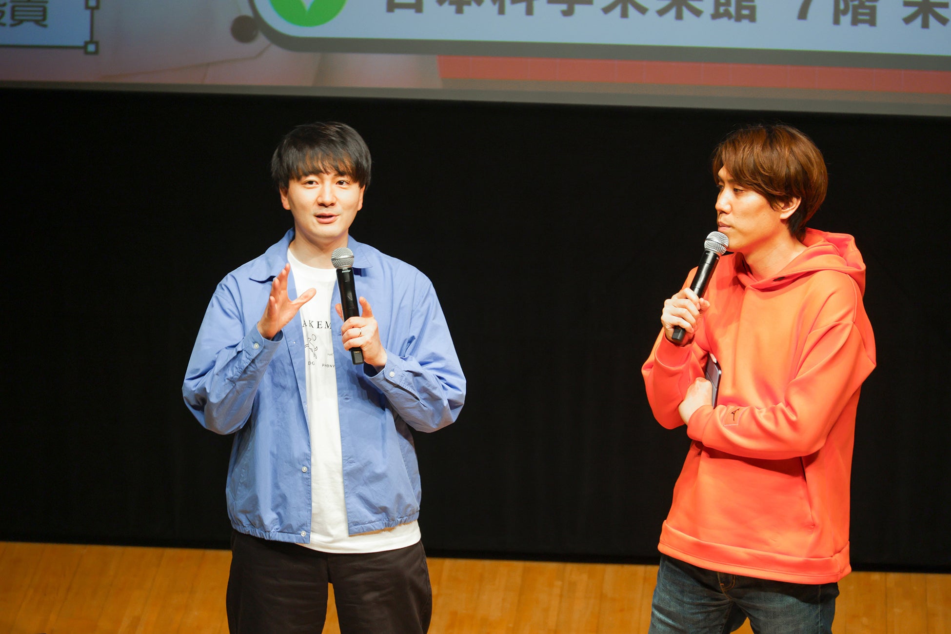 1人あたり約5分間の研究発表が終わるごとに須貝と田村が感想を述べ、研究の動機や研究手法を掘り下げる質問をしたり、観客や生配信の視聴者から集まった400件を超える質問のうちいくつかを選んで代読し、発表者に投げかけたりしました。