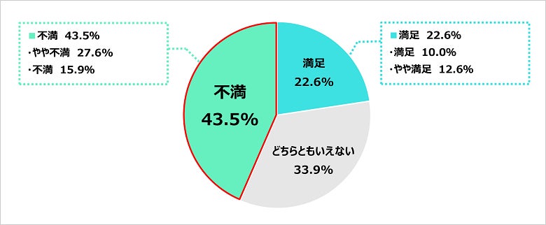 不満と回答した人(不満、やや不満)が最多となった。
