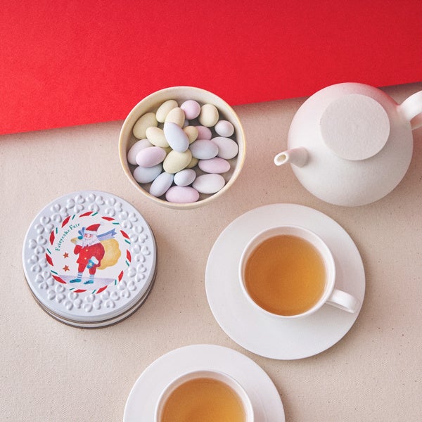 ヨーロッパで“幸福の種”と呼ばれるお祝い菓子、ドラジェ。結婚式や誕生祝いなど、人生の節目に贈る風習があり、ひと粒ひと粒に幸せを願う気持ちが込められています。チョコレートをまとわせた香ばしいアーモンドを、淡くやさしい4色の砂糖で包み、小さな缶にそっと詰めました。