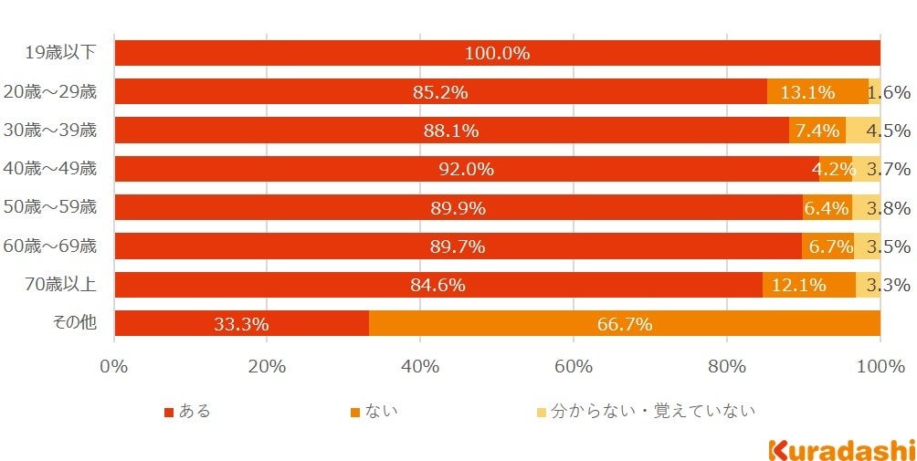 19歳以下を除いて「フードロスを発生させたことがある」と回答した方が最も多かったのは40歳~49歳で92.0%、次いで50歳~59歳が89.9%でした。