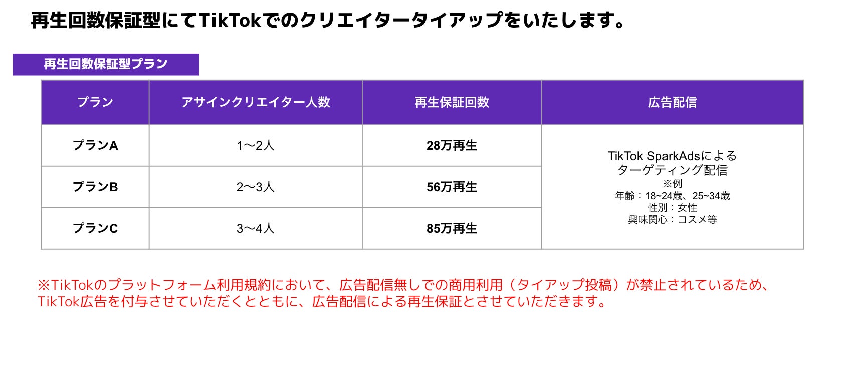 再生数をブーストさせるSpark Adsなどによる広告配信で、再生回数を保証いたします。