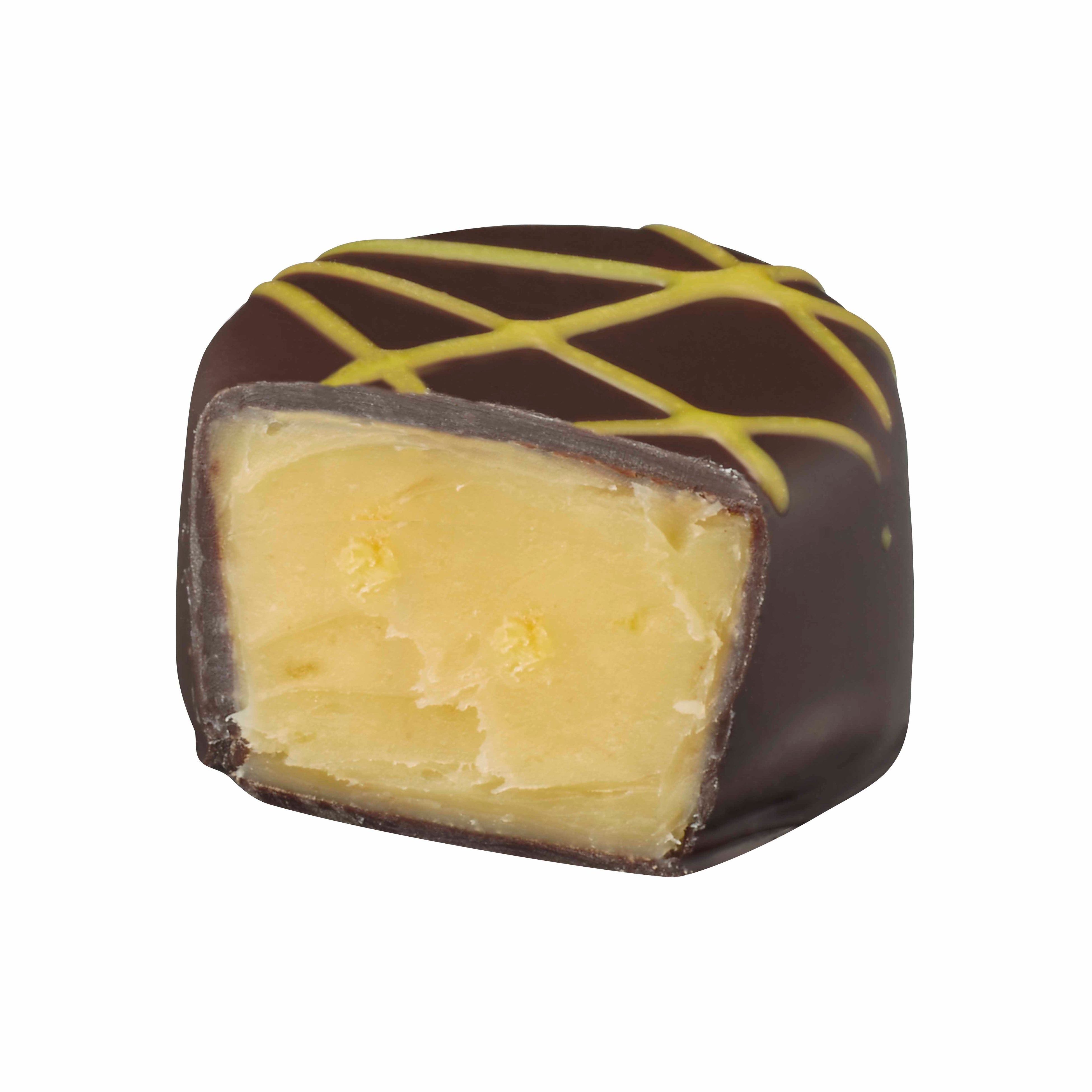 果肉入りの柑橘らしい酸味とジューシーさを感じる「伊予柑」のガナッシュと、ほろ苦いダークチョコレートの組み合わせが、柑橘好きにはたまらないひと粒です。