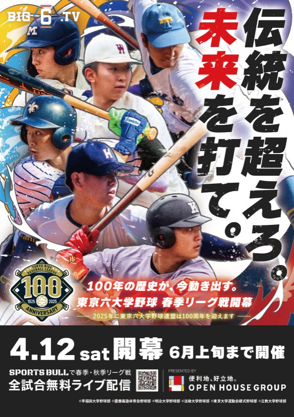 東京六大学野球は「100周年」、BIG6.TVは「9年目」に突入!今年も東京六大学野球を「SPORTS BULL」の「BIG6.TV」で全試合無料ライブ配信