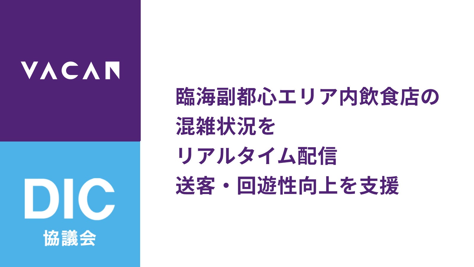 AIとIoTを活用して「待つ」をなくすサービスを提供するスタートアップ、株式会社バカン(本社:東京都千代田区、代表取締役:河野剛進、以下「バカン」)は、Digital Innovation City協議会(以下「DIC協議会」)の実証事業として、2024 年9月26日(木)より、東京ビッグサイトと国際展示場駅に臨海副都心エリア内の飲食店等の混雑状況を表示するサイネージを設置いたしました。本実証は有明地区にデジタルサイネージを設置し台場・青海地区の店舗のリアルタイム情報を配信、この情報を起点にエリア内での回遊を促進し、来訪者に混雑を避けた快適な体験価値を提供することを目的としています。