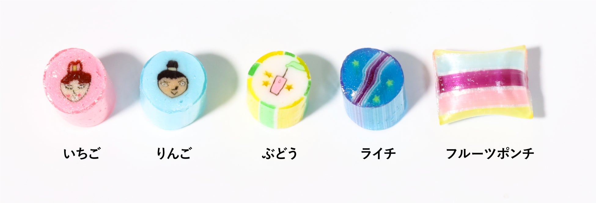 ひな祭りでも人気のあった手まり寿司キャンディが、3個から4個入りに増量して七夕に復活です。フレーバーは、爽やかな梅と、人気のフルーツ3種を組み合わせました。職人こだわりのリアルな質感と味との違和感にワクワクするキャンディです。