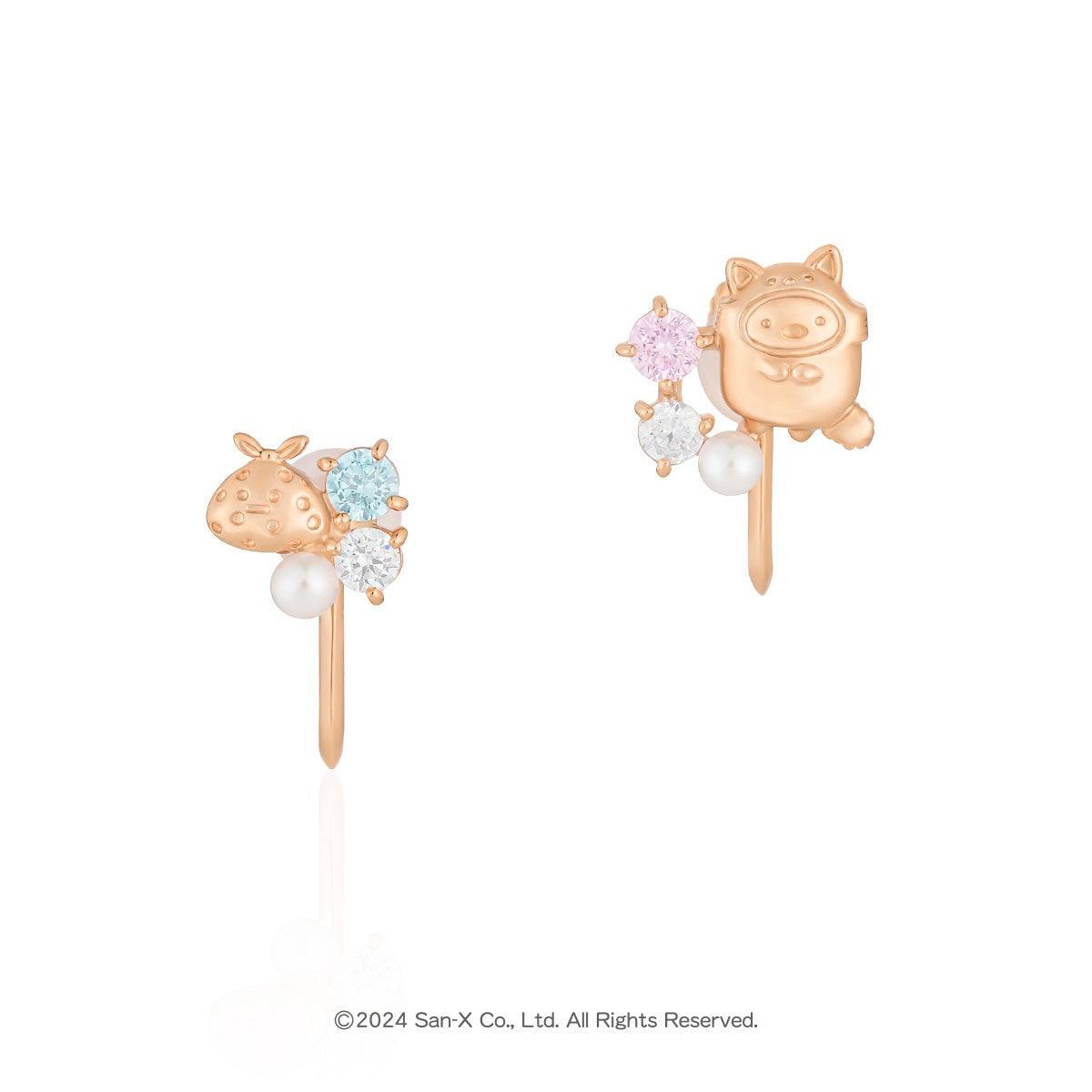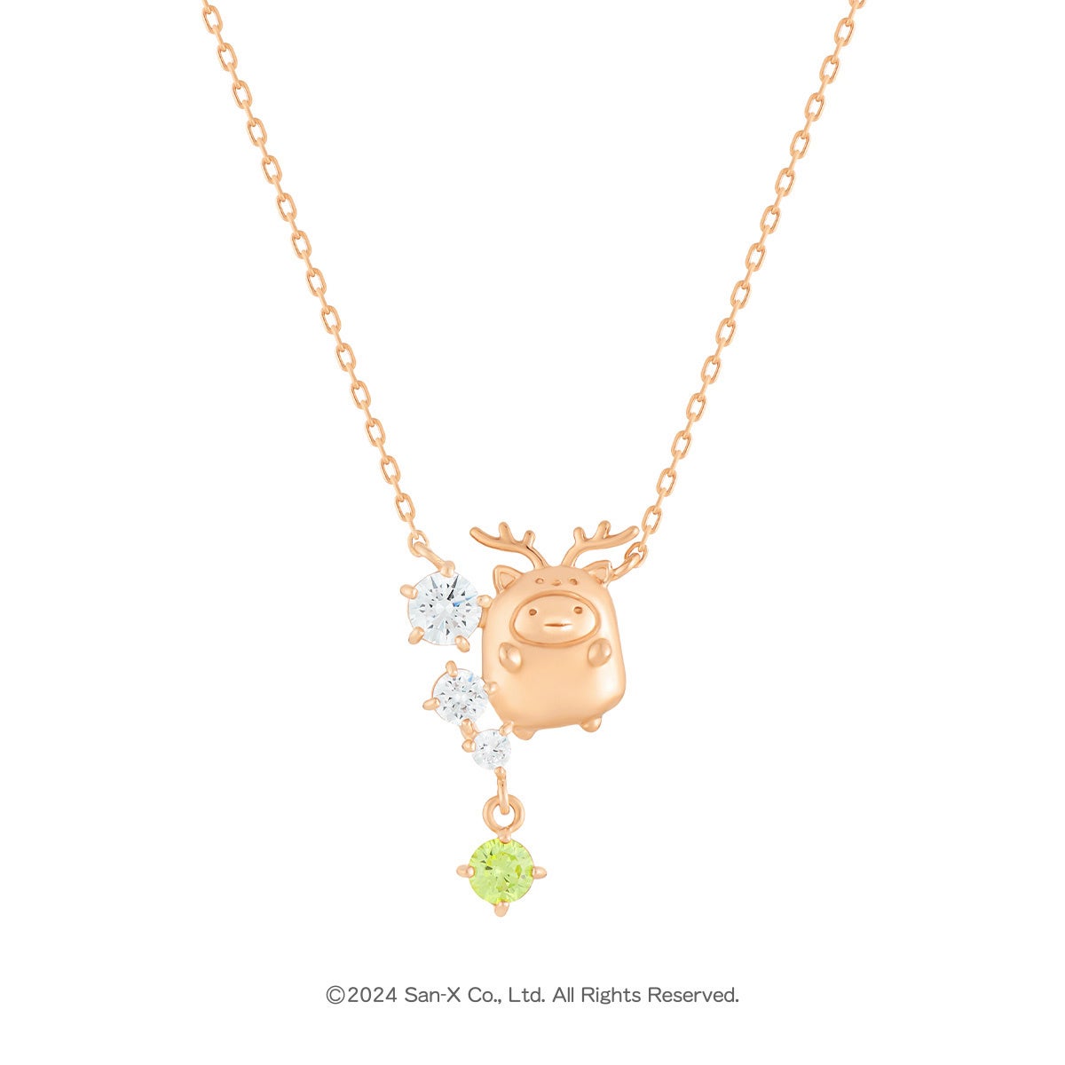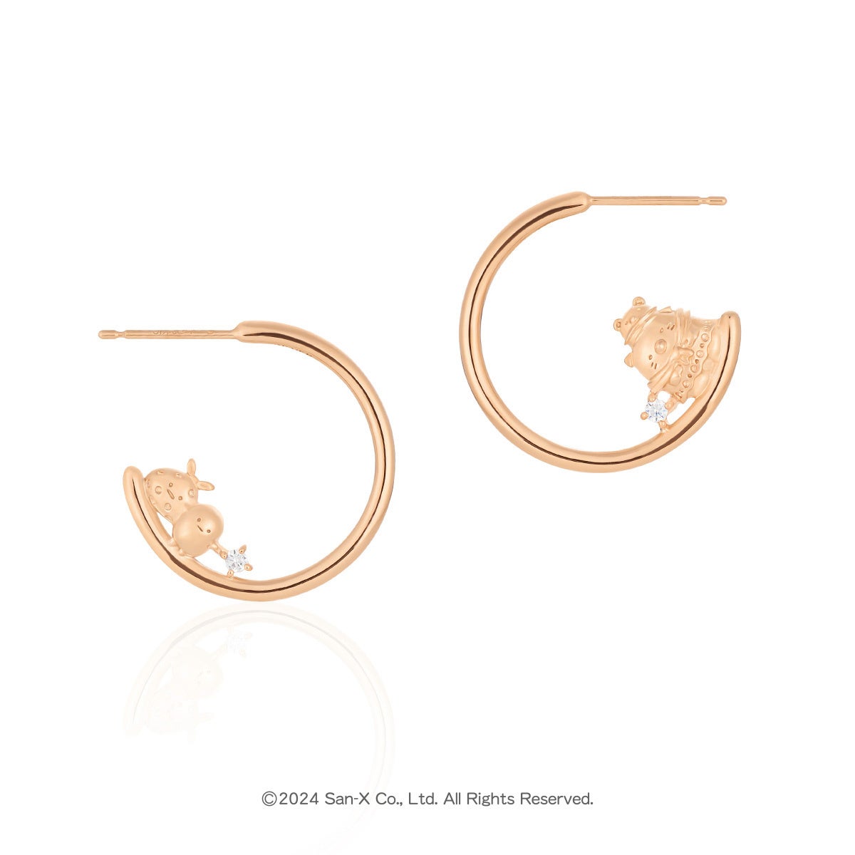 北の町でくらすふろしき(ほし)やホワイトたぴおかがデザインされたピアスやイヤーカフ、トナカイの毛皮に身を包んだぺんぎん?や、お出かけ用のお洋服でおめかししたねこ、白キツネの毛皮を着たしろくまなど、人気のキャラクターも冬仕様に。みにっコたちが集まったステーションネックレスは、楽しげに揺れるキャラクターたちがキュートな「しろくまのふるさと」のお話を思い出させるデザインです。