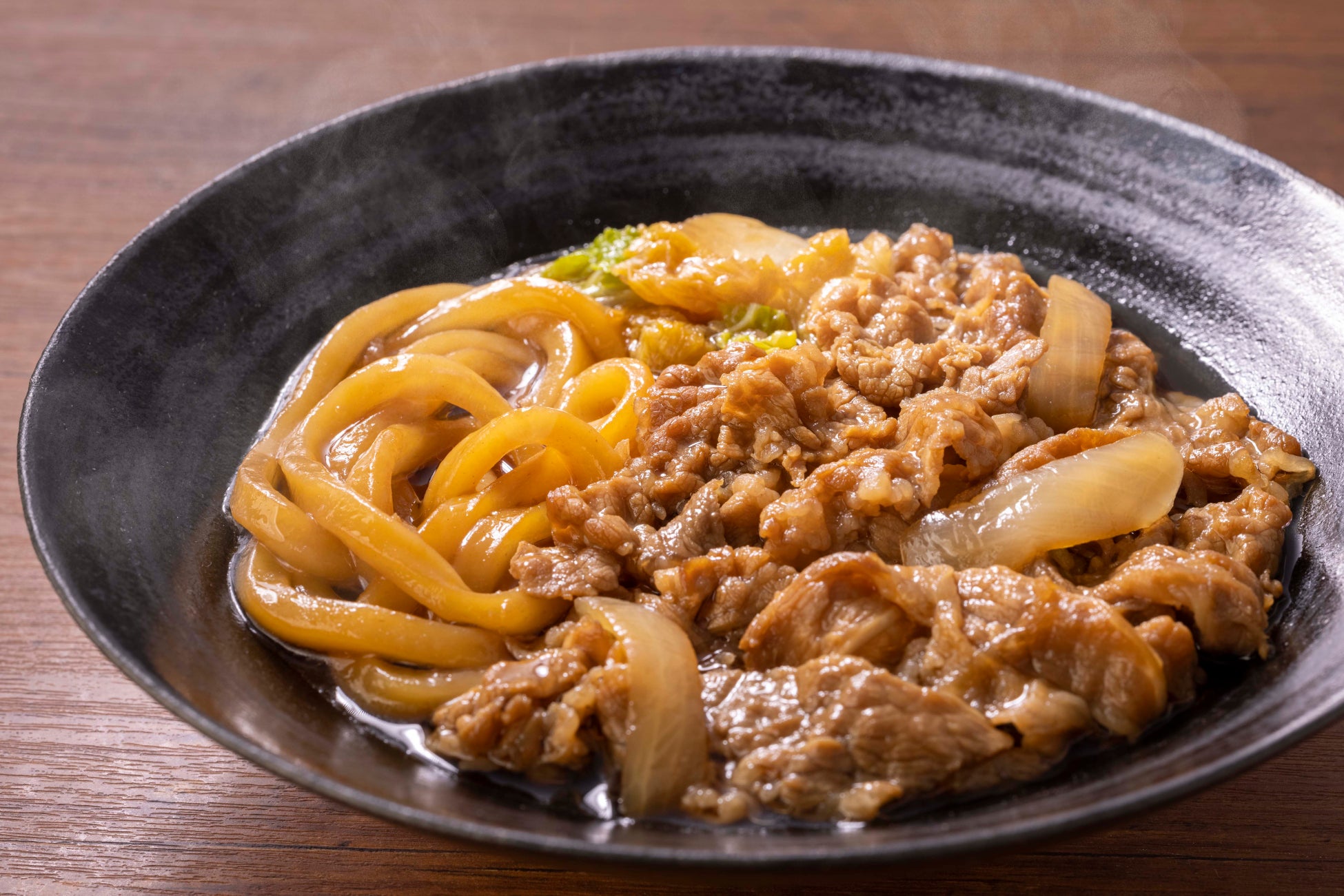 吉野家の店舗で大人気の「牛すき鍋膳」にインスパイアされ、ご家庭でも電子レンジ調理や湯煎調理で気軽に牛すき鍋をお楽しみいただけるように商品開発したのが「冷凍牛すき」です。吉野家秘伝の牛丼の具のたれをベースにした特製たれで牛肉とうどんを煮込みました。たれにも食材にも深いコクとうまみが行き渡り、豊かな風味とともにお召し上がりいただけます。食後感は重さを感じないすっきりとした仕様に仕上げました。さらに、生玉子を用意して牛肉をくぐらせたり、豆腐や長ねぎなどお好みの食材を足したりすると本格的な牛すき鍋としてお楽しみいただけます。