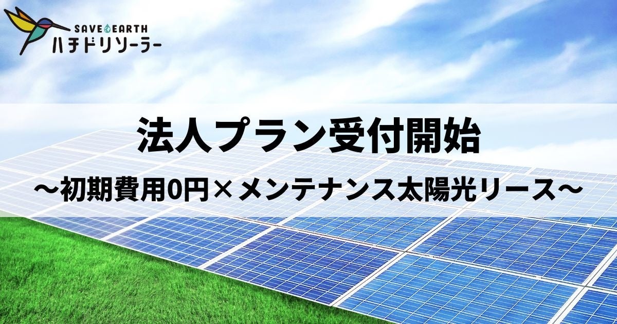 0円ソーラー法人プラン受付開始!ハチドリソーラーが新サービス「初期費用0円×メンテナンス付き」法人向け太陽光リースを全国でスタート