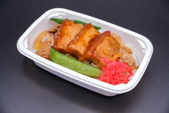 柔らかい豚肉を甘辛い味付けで炒め、ふんわりと仕上げた上に、さらに豚の角煮を載せた贅沢な一品です。