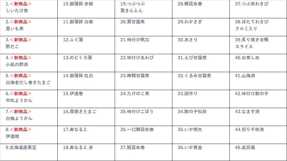◆ 新商品:ご要望の多い「海産物」・初の「和菓子」・ご当地おせち等、8品を追加