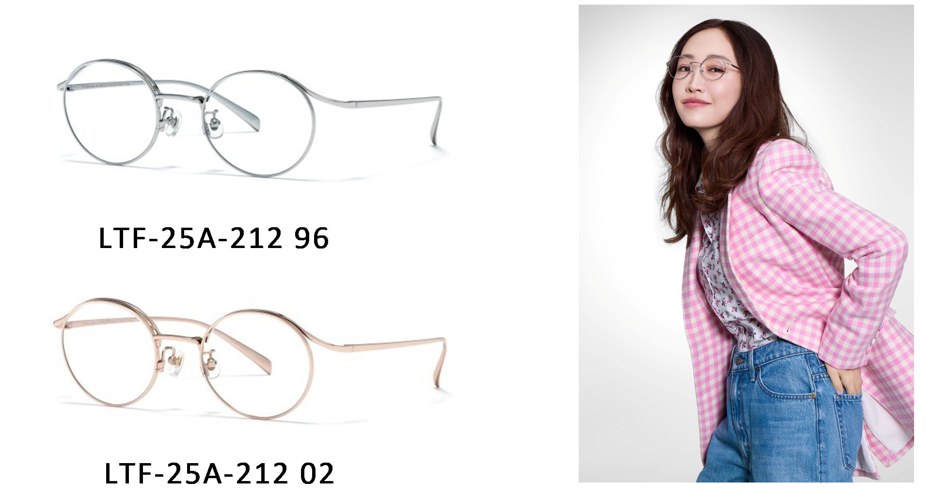 チタン素材で光を集め、顔全体を明るくトーンアップするラウンドフレーム。