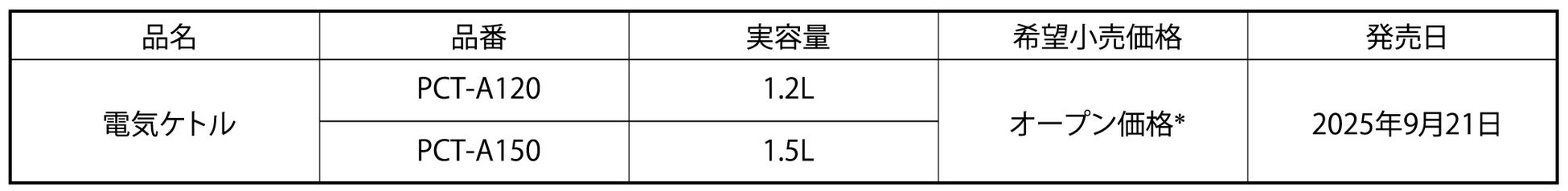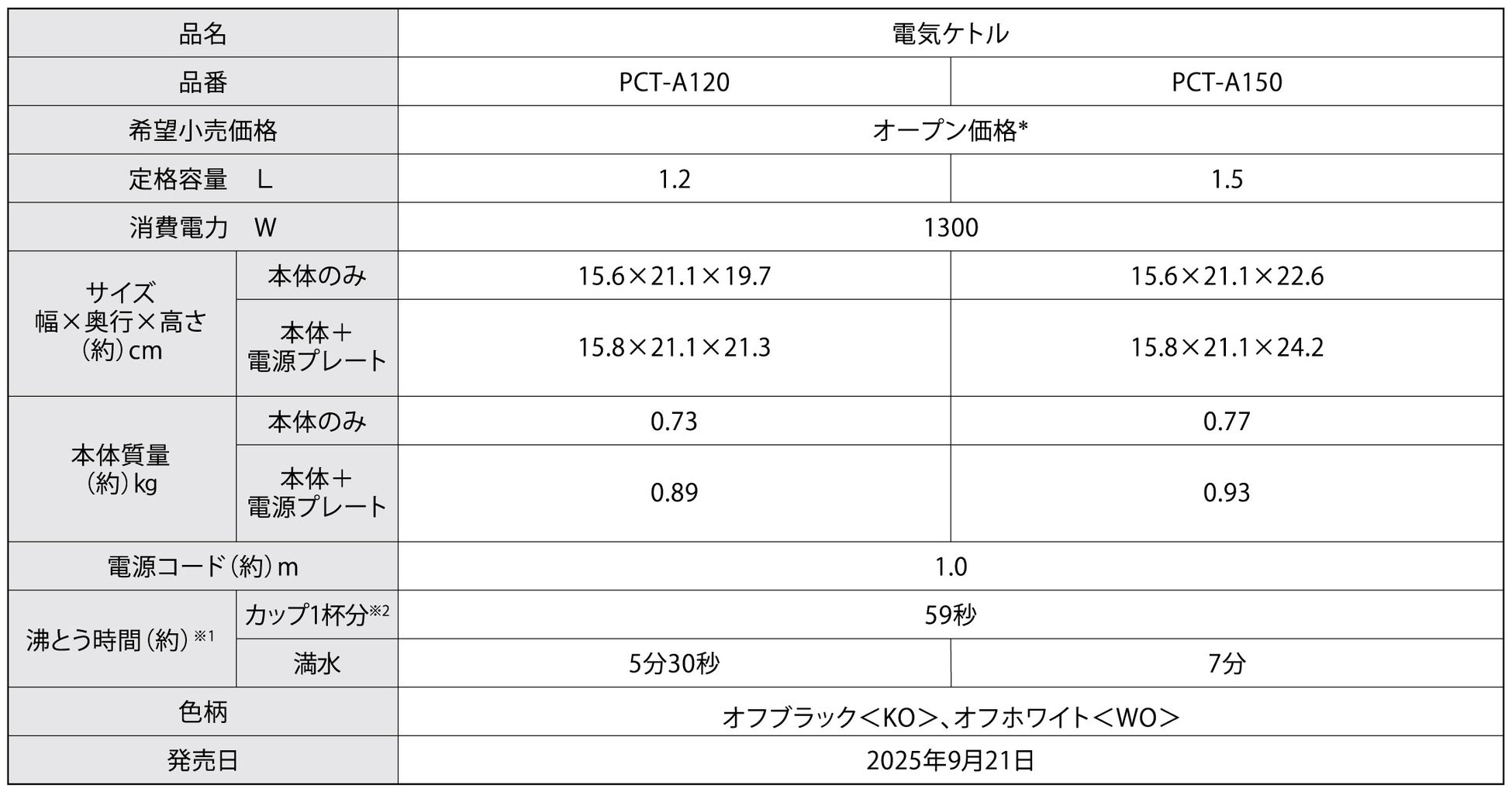電気ケトル PCT-A120/A150 2025年9月21日発売