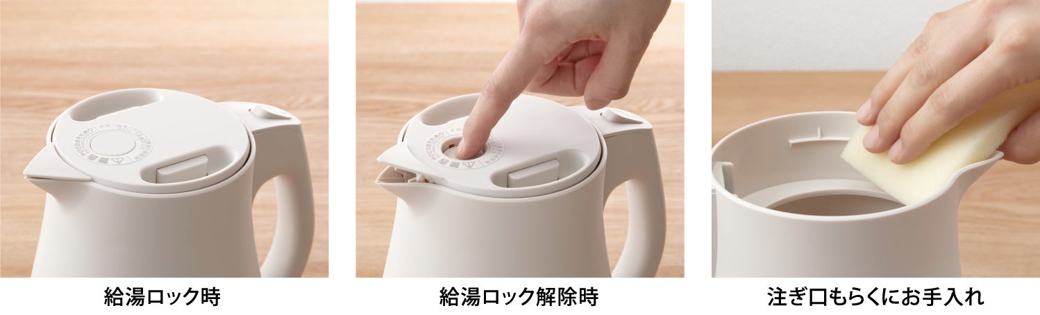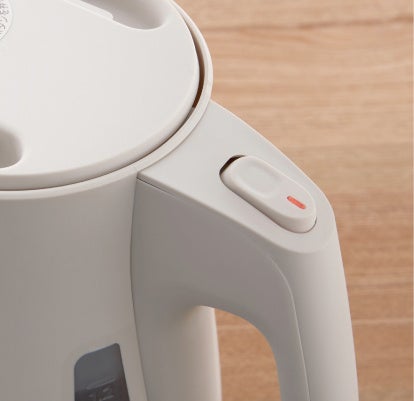 もちろん、当社の電気ケトルの基本である“安全設計”は備わっており、万一倒れた場合でもお湯もれを最小限に抑える「転倒お湯もれ防止※1」構造、蒸気の量が少ない「省スチーム設計※2」を搭載しており、安心してお使いいただけます。さらに、カップ1杯分約59秒※3のスピード沸とうで、忙しい朝や、急な来客、慌ただしい家事の合間にもお湯がすぐ沸かせます。