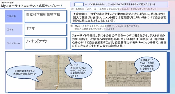 2回目となる本年は、「フォーサイト手帳」および「フォーサイトアプリ」を導入する全国1,200校以上を対象として開催。約1,700件の応募が集まり、昨年度(約300件)から大幅に増加しました。「あなただけのフォーサイト」というテーマのもと、全国の小中高生が日々のふり返りを通じて見つけた「自分だけのルール」や「成長エピソード」が寄せられ、審査の結果、最優秀賞3名、 優秀賞22名が選出されました。
