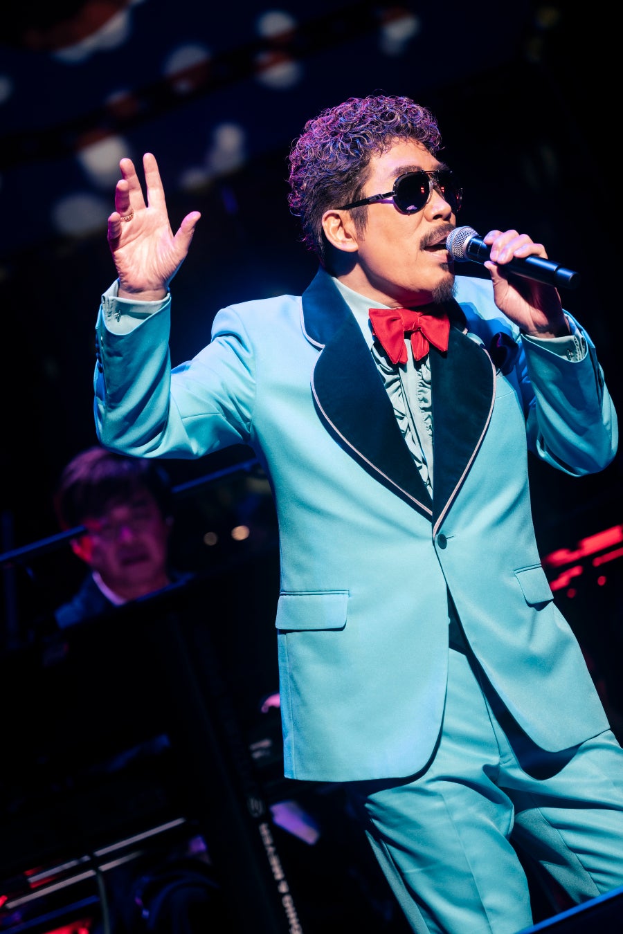 鈴木はまずは「恋人」から。ソウルフルかつ、瑞々しく繊細な歌が会場に響き渡る。「亀梨和也はラブソングのプリンス、そしてラブソングの王様・鈴木雅之です」と自己紹介すると大きな拍手が贈られる。そして「本間からグループ時代の曲をやって欲しいというリクエストがあったので」と、ラッツ&スターのトレードマークの白い手袋をしながら桑野信義と佐藤善雄を呼び込み、鈴木のツアーのコーラス隊を加え「ハリケーン」を披露。続いて桑野のトランペットが鳴り響く「め組のひと」を投下すると、客席も一緒に振付を楽しむ。そして「みんなと歌える曲を」と、美しい大滝詠一メロディの名曲「夢で逢えたら」を歌うと、客席も大合唱だ。本間は「夢で逢えたら(2020ver.)」のサウンドプロデュースを手掛けている。デビュー45周年の鈴木の貫禄を感じる最高のエンタメショウだった。