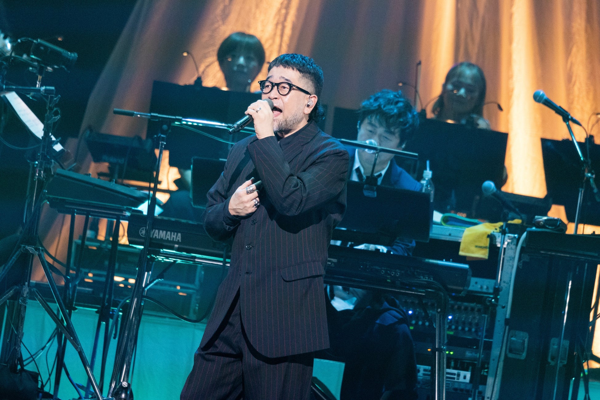 そして本間がこれまでアレンジを手掛けた作品を、アーティストがメドレーで披露するコーナーがスタート。渡辺美里は、30周年記念第一弾シングルとして大江千里が書き下ろした「ここから」(編曲:本間昭光)を披露。<未来はここにある ここからまた始めよう>と本間にメッセージを贈った。広瀬香美「promise」は亀梨和也と岡野昭仁(ポルノグラフィティ)という異なる色気を感じるボーカリストの共演に客席が沸き立ち、カズン「冬のファンタジー」は藤井隆とコーラスの会原実希が美しいハモりで魅了する。松本隆×筒美京平のゴールデンコンビの手による名曲、中川翔子「綺麗ア・ラ・モード」は、いきものがかりがカバー。80年代の薫りを感じるこの曲を吉岡が丁寧に歌い、届ける。そしてV6「Darling」はこの日は槇原敬之がカバー。人懐っこいメロディがさらに親近感を湛えて伝わってくる。