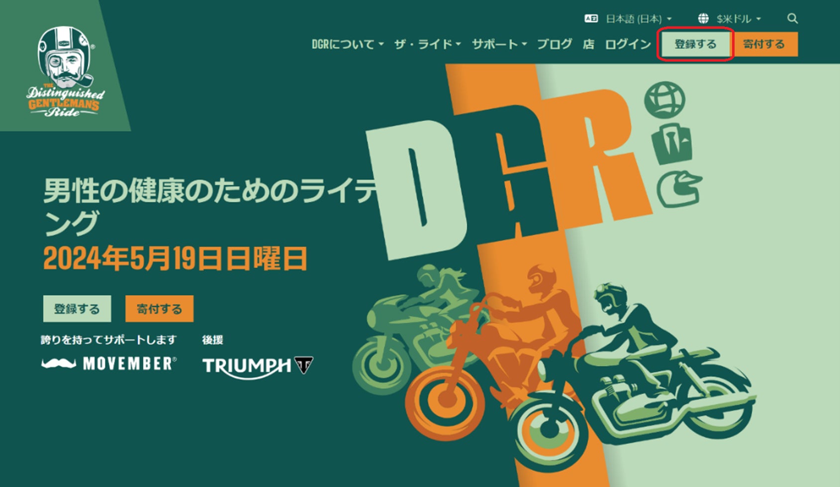 ※DGRは男性のメンタルヘルス対策のためのチャリティイベントとなります、寄付をされない状態での各地のライドイベントへの参加は出来ませんのでご注意ください。
