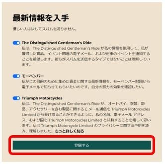 トライアンフから「DGR への登録方法」ならびに、「東京イーストライドへの参加方法」のお知らせ