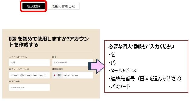 1:DGR公式サイトから【登録する】を選択し、DGRへの登録を進めてください。