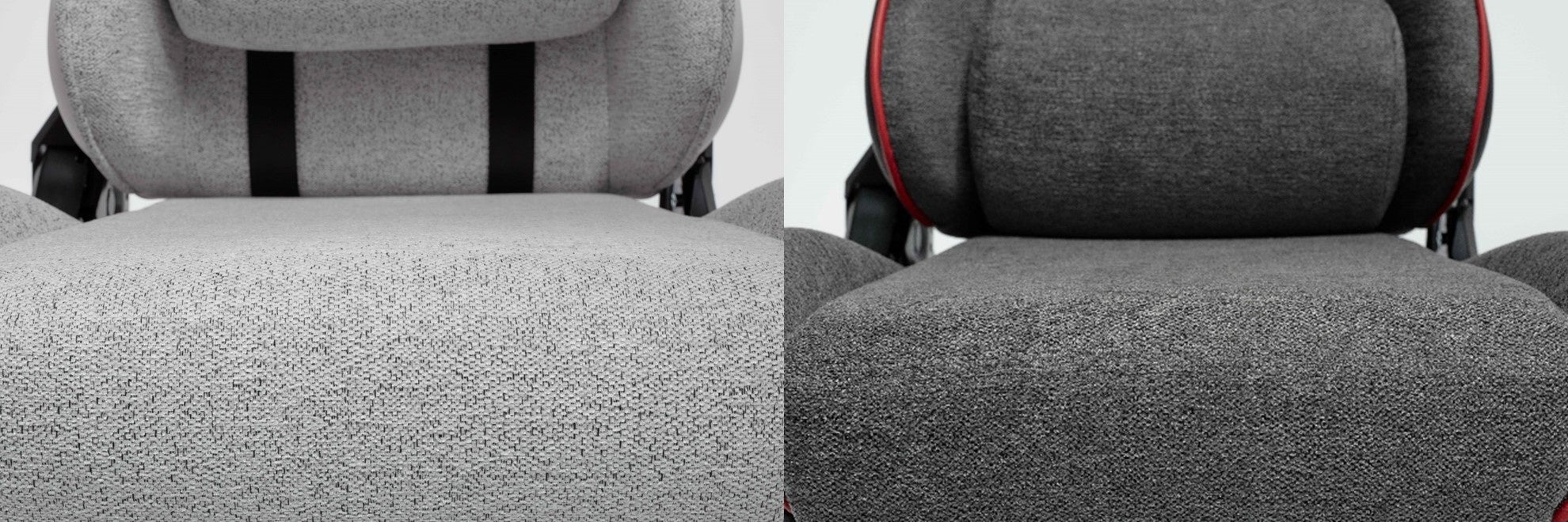 両デザインとも座面をファブリックにすることで発汗による蒸れを軽減しました。