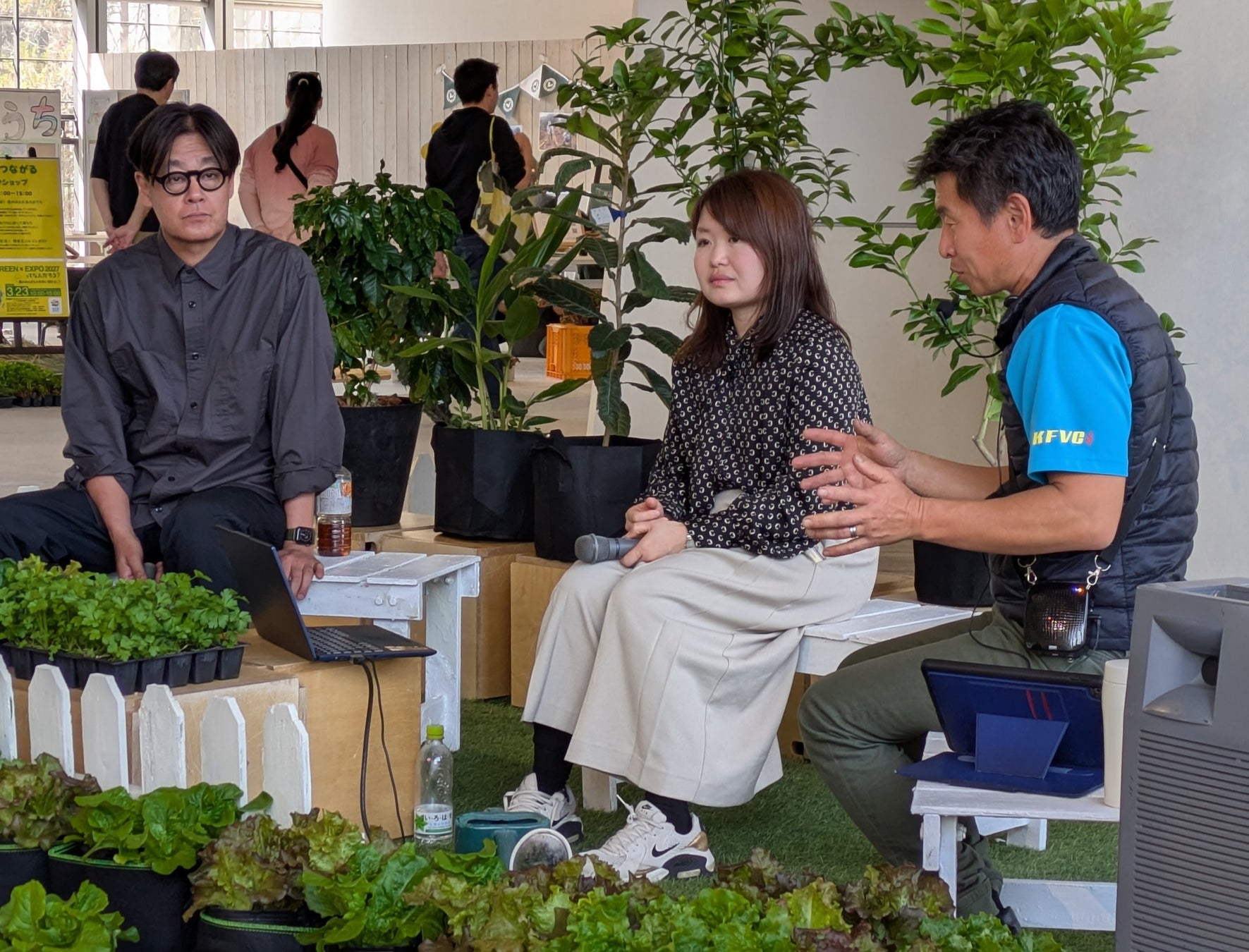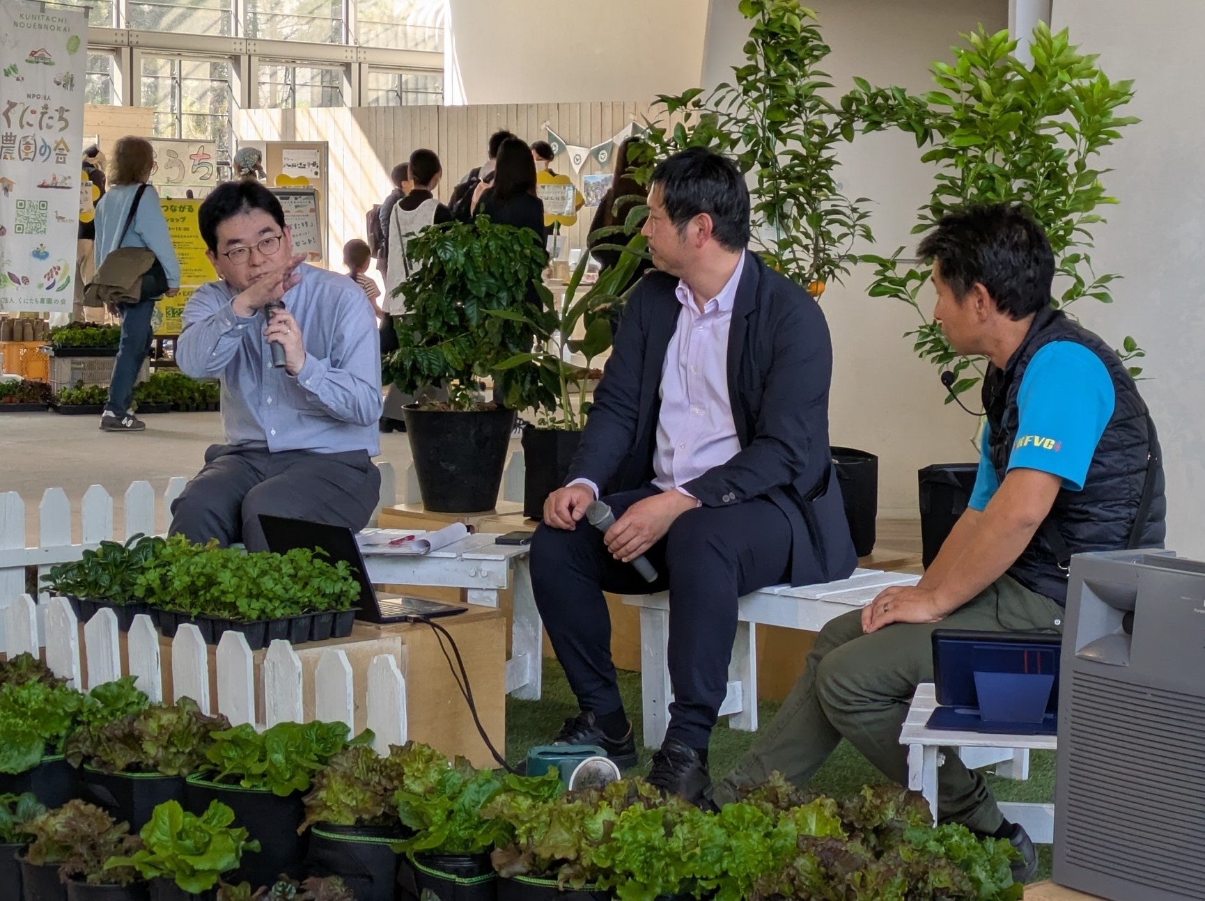 春らしい陽気の中、「GREEN×EXPO 2027」の紹介や、農あるまちについてのトークセッションに合わせて、ミニ畑づくりなどのワークショップや地元立川産の野菜販売が行われました。