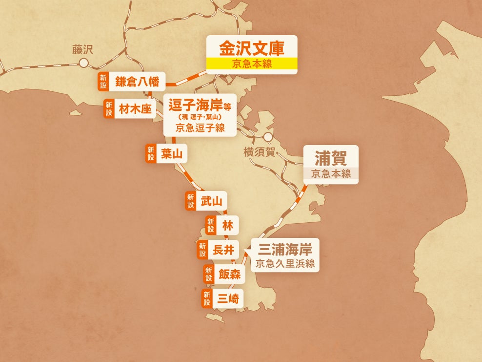 浜急行電鉄の前身となる湘南電気鉄道が、神奈川県の三浦半島を循環する路線を計画しましたが、免許を取得した5日後に関東大震災が発生するなど逆風に見舞われ、そのほとんどが実現しませんでした。実現していれば、マグロの町として知られる三浦半島西南端の三崎港や、海と山に囲まれた自然豊かな葉山など、現在、車やバスでしか行けない場所へ電車で行けるはずでした。