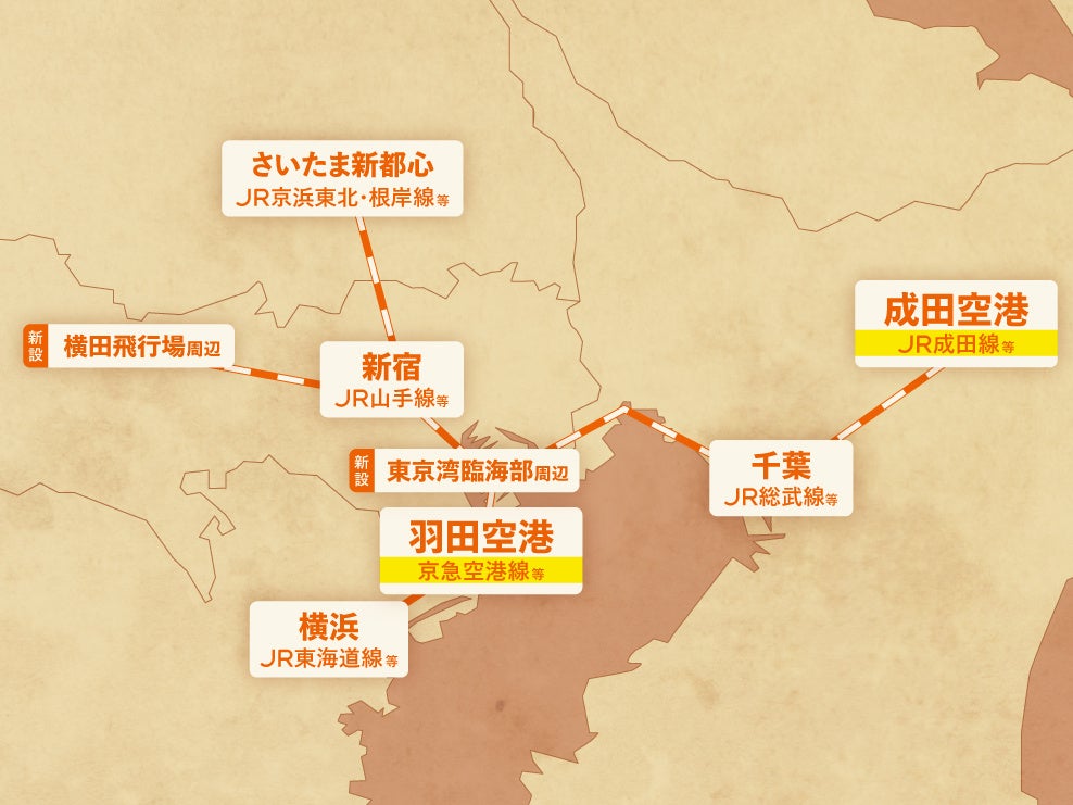 両空港間のアクセス強化はもちろん、首都圏各地からの空港アクセスも改善することで国際競争力をつけようというものですが、高額な事業費などから計画は具体化していません。また、横浜市・さいたま市と、首都圏第3の空港として横田飛行場への路線拡大も構想されていました。