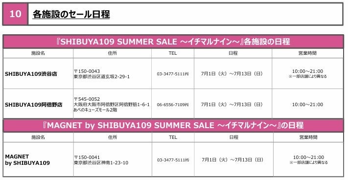 SHIBUYA109/MAGNET by SHIBUYA109 夏セール開催のお知らせ