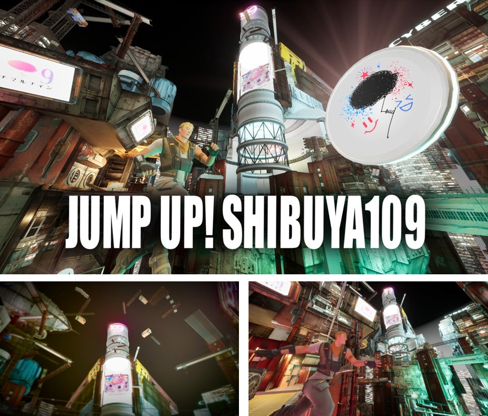 本キャンペーン期間中、オンラインゲーム「Fortnite」のSHIBUYA109新クリエイティブマップ『JUMP UP! SHIBUYA109』内に、『SHIBUYA109 SUMMER SALE ~イチマルナイン~』キャンペーンビジュアルが登場!圧倒的なグラフィックで描かれた“仮想の渋谷の街”を舞台に、「クラウドナイン」所属アーティストをモチーフにしたロゴコインを集めながら、無数の足場を飛び越え頂上のゴールを目指す、スリリングなアスレチックゲームをお楽しみいただけます。