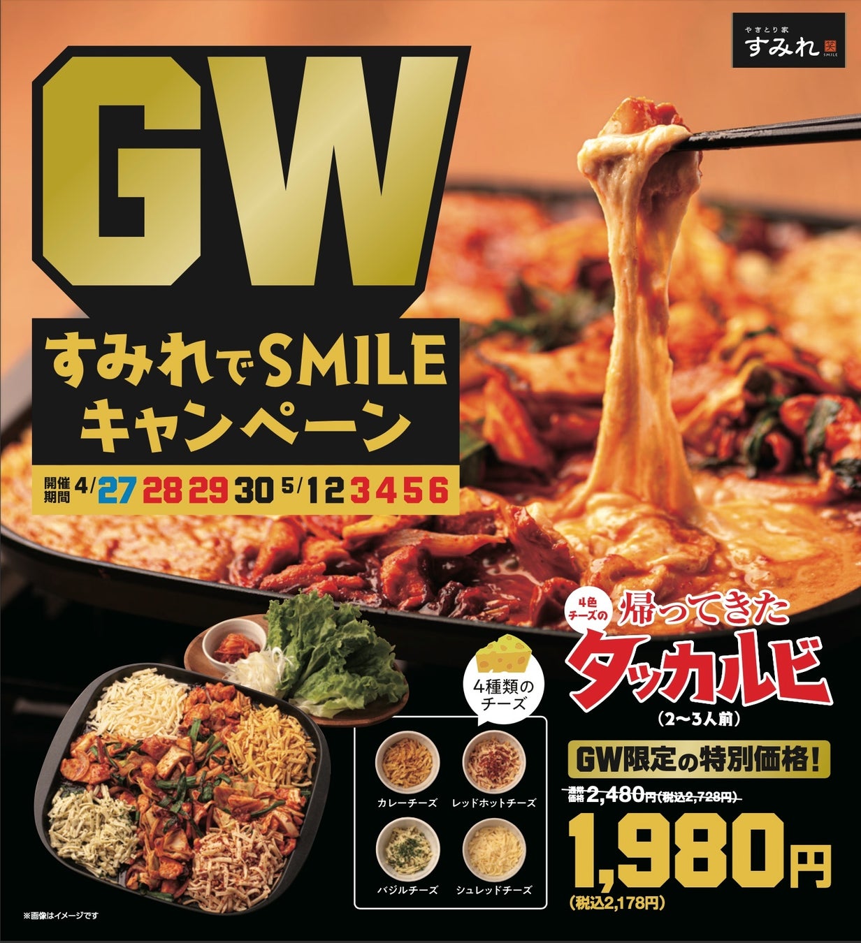 【GW期間は550円引き!】「やきとり家すみれ」の人気メニュー『チーズタッカルビ』が復活!4種類のチーズで新たなる味わいへと進化。4月27日(土)から特別価格で販売