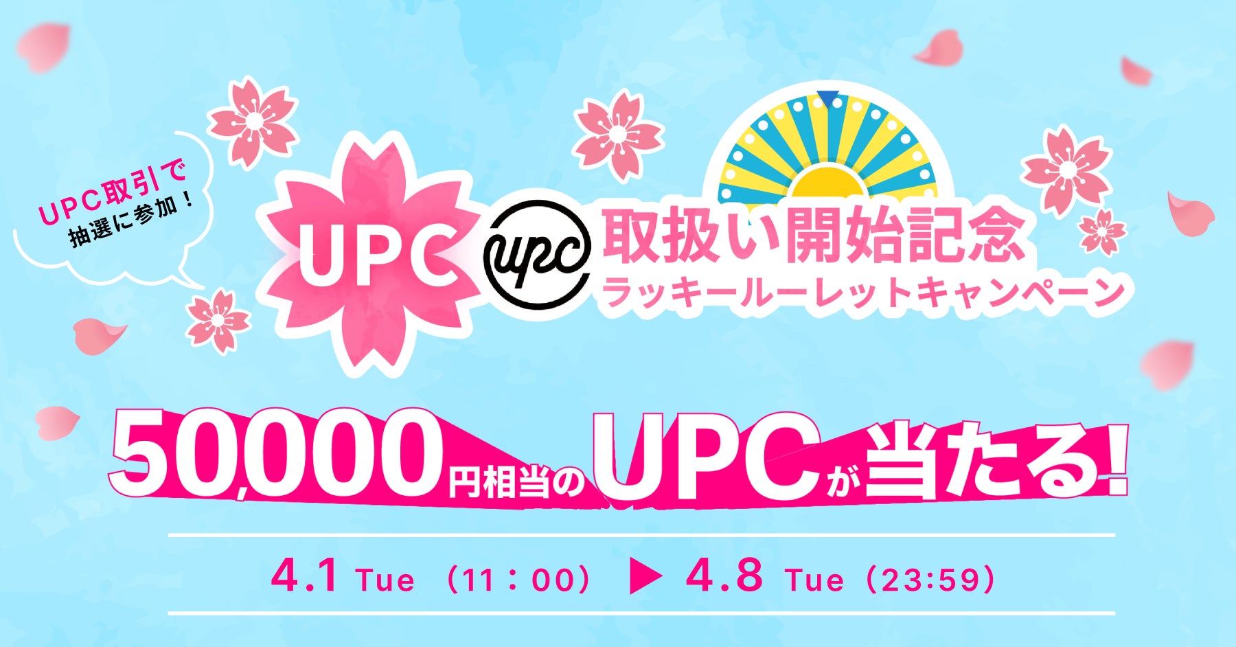 ビットトレード株式会社(所在地:東京都港区、代表取締役社長:関 磊、以下「ビットトレード」)は、4月1日(火)よりUPC取扱い開始記念ラッキールーレットキャンペーンを実施いたします!