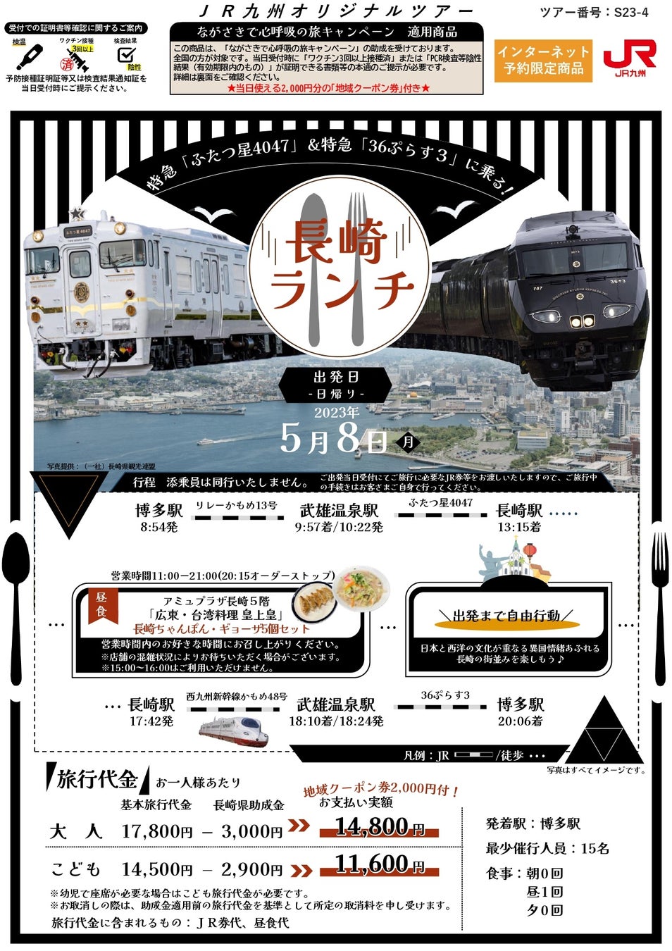 (1) ツアー名称:特急「ふたつ星4047」&特急「36ぷらす3」に乗る!長崎ランチ