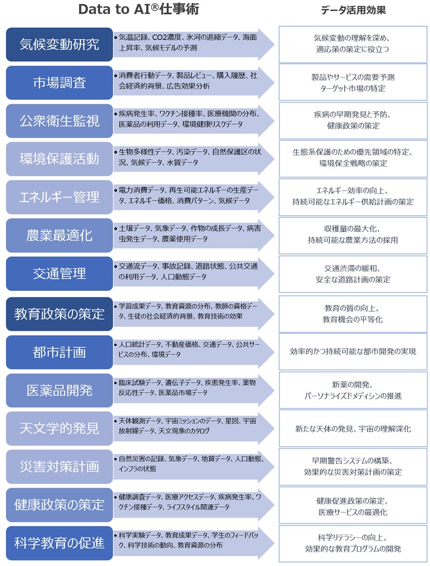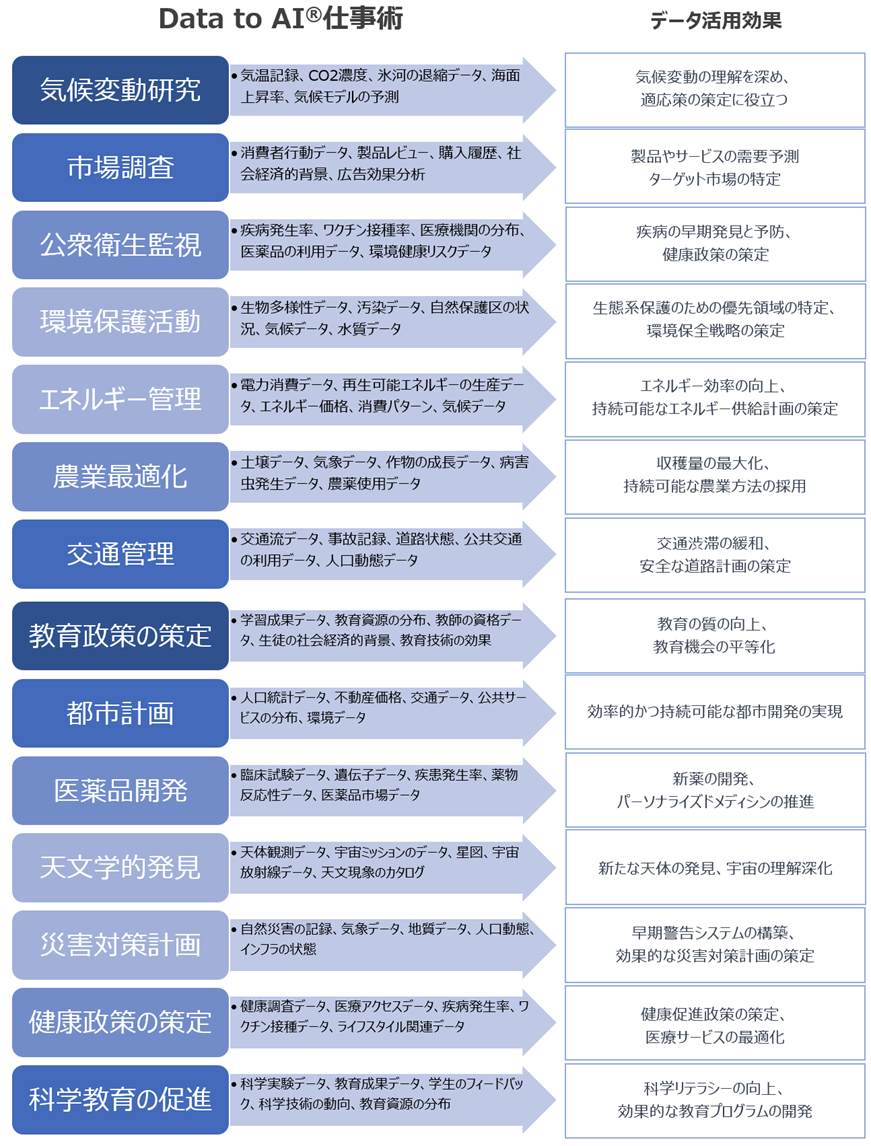 これらのデータは、各分野の研究、政策立案、教育、さらには一般社会においても非常に重要な役割を果たしています。