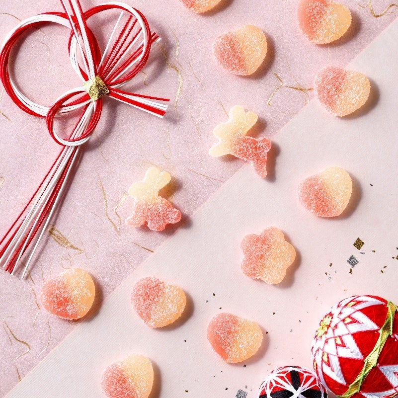 《「ピュレグミ梅」がパワーアップ!グミ粒は縁起の良い紅白カラーで「うさぎ」や「梅の花」のレア型も!》