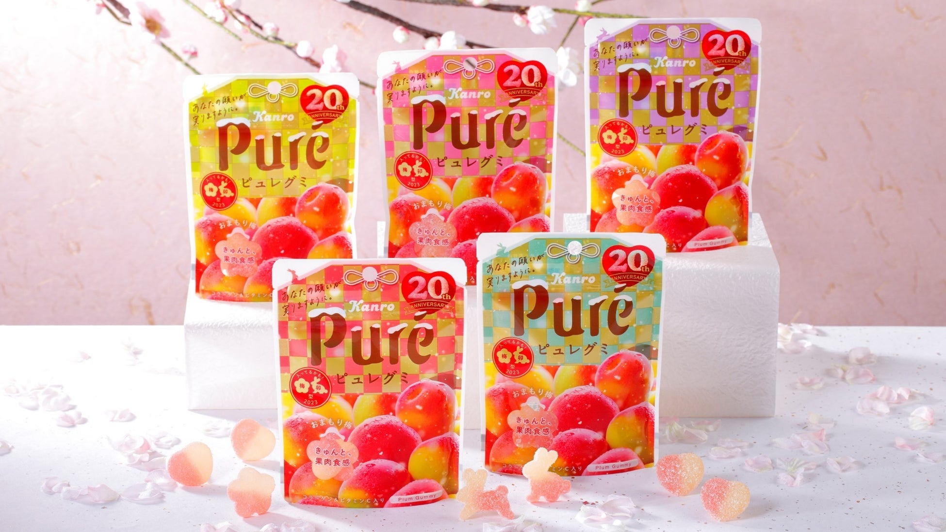 『ピュレグミ』は、2002年の発売以来、幅広い世代の方からご支持いただいているカンロの人気商品です。フルーツのおいしさを引き出す“すっぱいパウダー”と独自の“果肉食感”により、噛むほどにフルーティーな甘ずっぱいおいしさが広がり、食べた瞬間こころが晴れるように、ちょっとハート(気持ち)があがるハート型のグミです。ピュレグミは今年で20周年。「ときめく風に、乗れ。」というメッセージを通じて、みなさまのときめく気持ちを応援していきます。