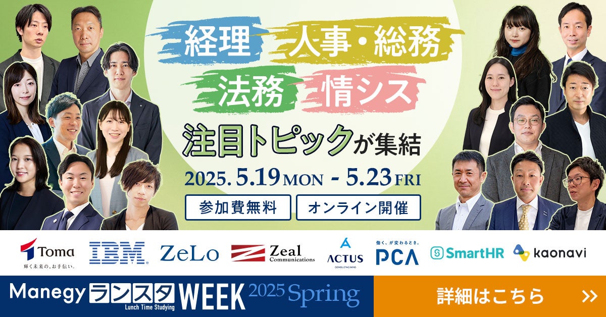 株式会社 MS-Japan(本社:東京都千代田区 代表取締役会長兼社長CEO:有本隆浩/以下 MS-Japan 証券コード:6539)が運営する管理部門と士業のためのビジネスメディア「Manegy」は、5月19日より、管理部門向けオンラインイベント『ManegyランスタWEEK-2025 Spring-』を開催いたします。開催に伴い、ただいまイベント参加者募集中のため、お知らせいたします。