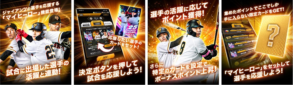 応援したい選手のデジタルカードを4名セットし、実際の選手成績に応じてポイントを獲得できる試合連動機能です。