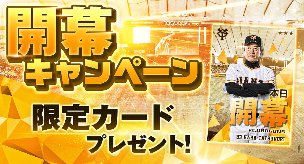 プロ野球開幕当日の3/31(金)にGスタへログインすると、原辰徳監督の限定カードをプレゼント!