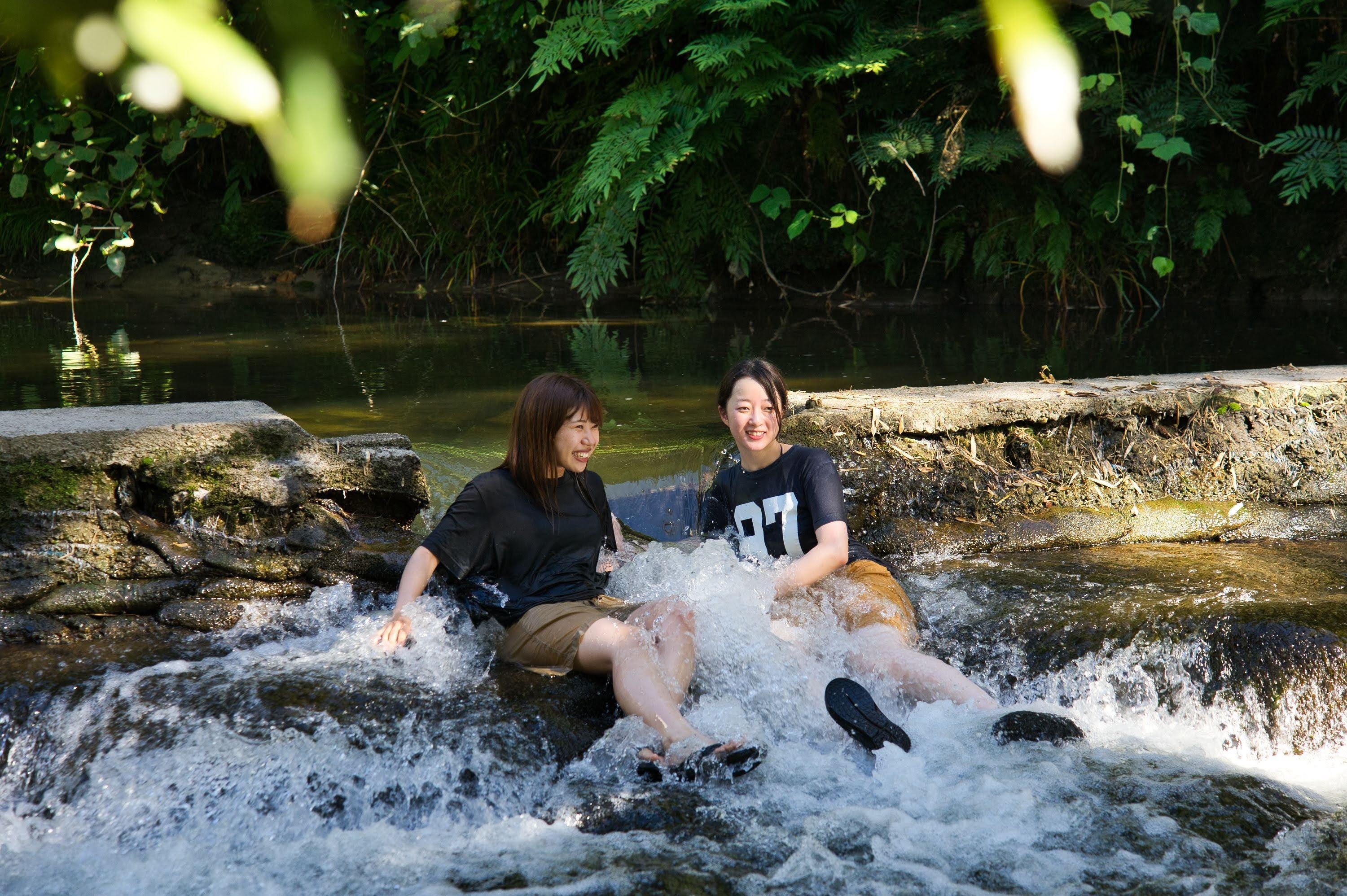 テントサウナでたっぷり汗をかいたら、目の前の天然の川の水風呂にダイブ!