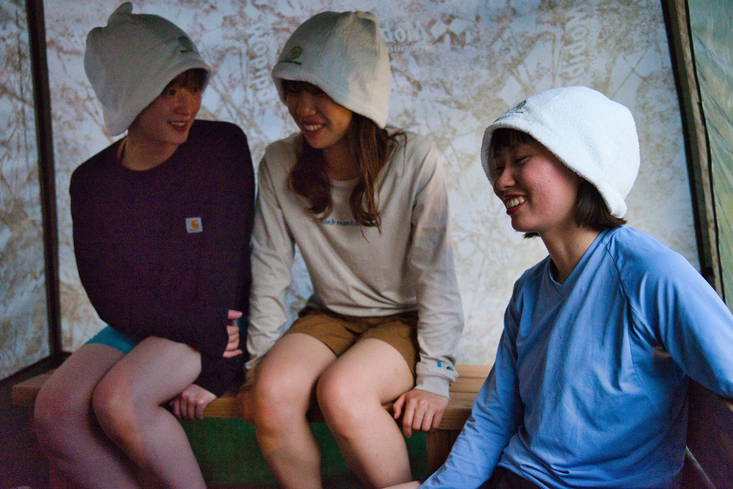 テント内の温度は最大100℃近くまで上昇し、自分でサウナストーンに水をかけるセルフロウリュウをしながら、お好みの温度、湿度で楽しめます。