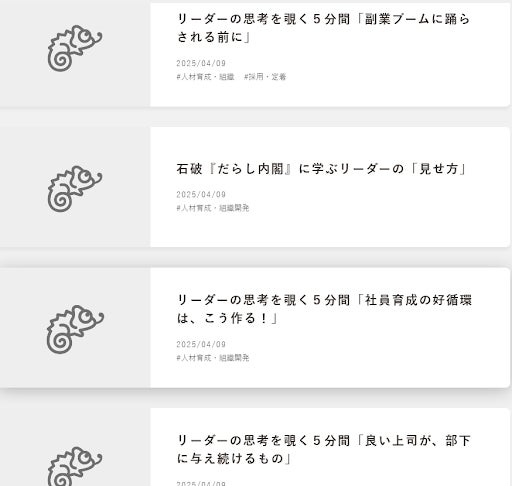 ブランディングの先駆者として、全国各地でブランディング・セミナーに登壇する当社代表 関野の考えを、日本中の経営者、リーダーに知っていただきたいという想いから、当社ではメールマガジンでの情報配信を行っております。読者の方からは「我が意を得たり」「新たな気付きを得られた」「会議で出席者に紹介した」「メールを印刷して社員に配布した」などの感想が日々寄せられています。一方で、「過去のメールを消してしまったが再度読みたい」「HP内で誰でも読めるようにしてほしい」「人事評価制度関連のものだけまとめてほしい」といったご意見が最近増えてまいりました。