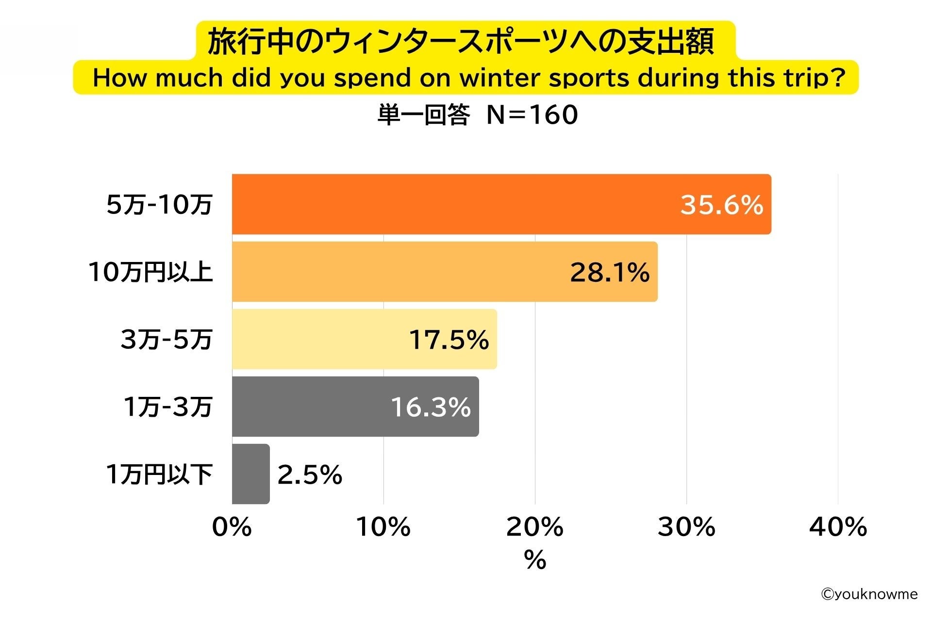 株式会社TSTエンタテイメント(東京都新宿区、代表取締役社長:都甲義教)が運営する訪日外国人観光客の“リアルな声”を対話形式で引き出すインバウンド調査サービス『youknowme(読み:ユノミ)』は、Alpen TOKYOと共同で、訪日外国人観光客160名を対象に、Alpen TOKYOおよび東急歌舞伎町タワー(いずれも東京都新宿区)にてアンケートを実施し、「訪日外国人観光客のウィンタースポーツ体験に関する実態調査」を行いました。