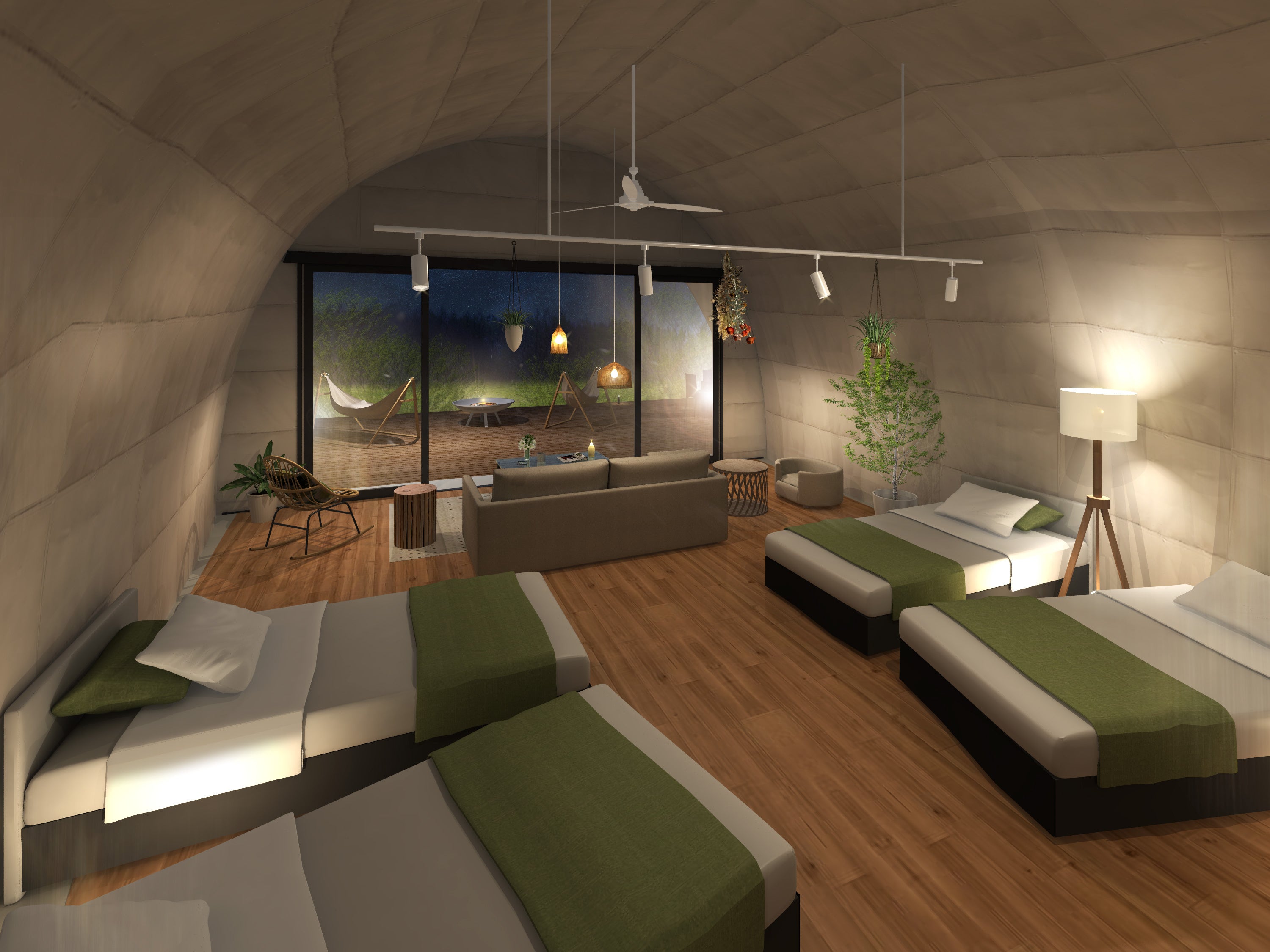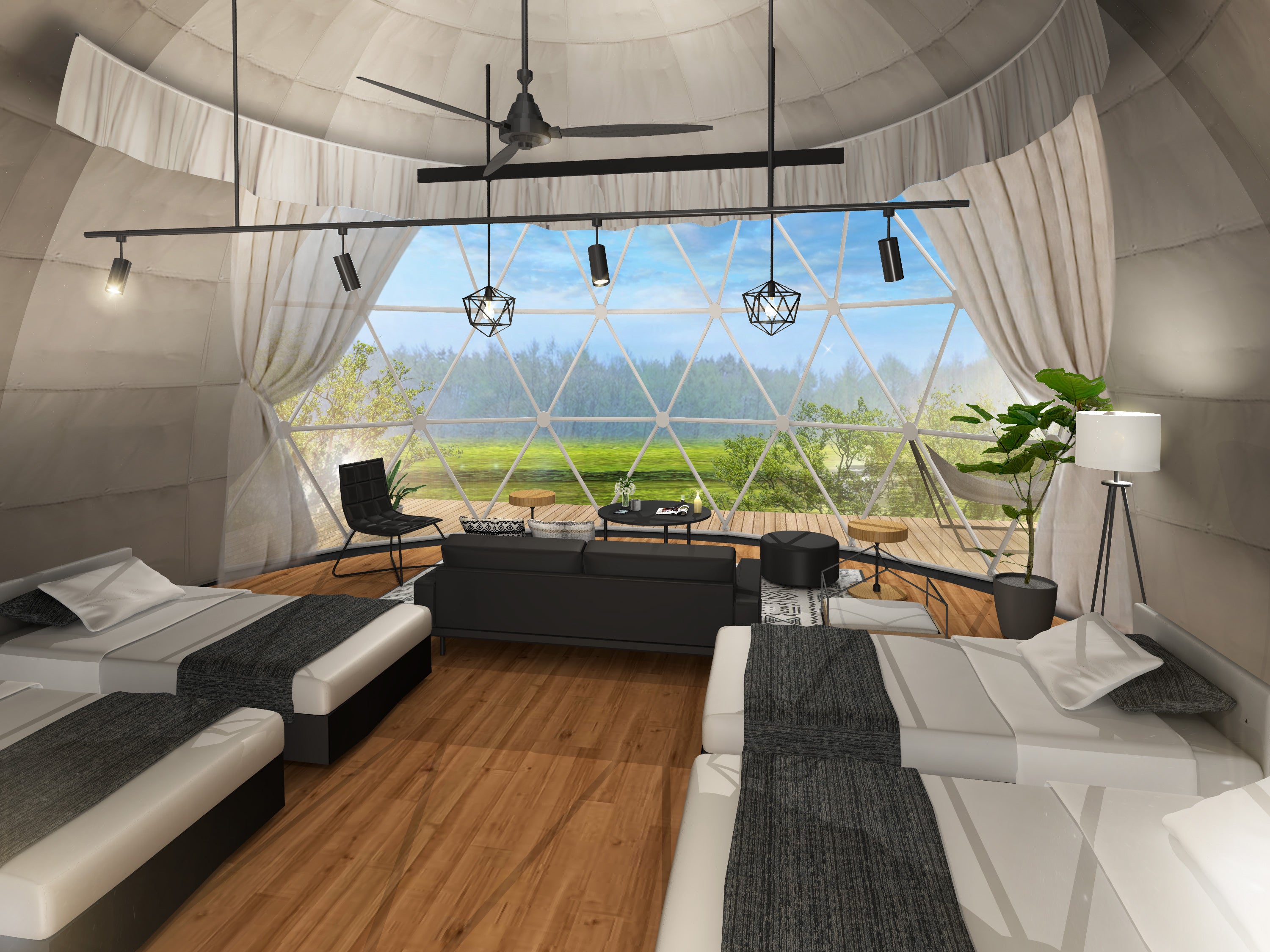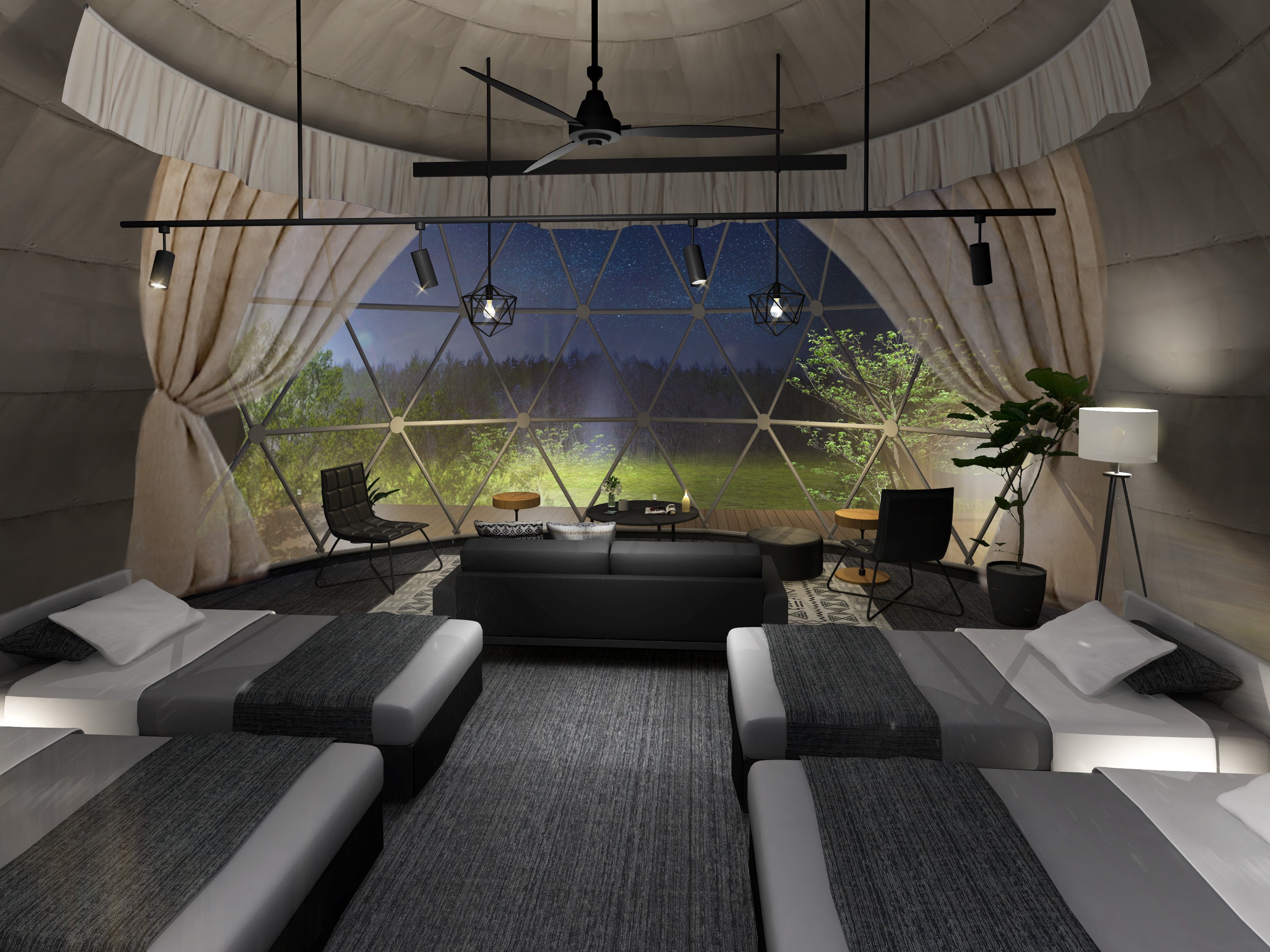 エリア最大級の客室面積を誇るラグジュアリープライベートヴィラ、広々としたガーデンを配した直径8mの大型ドームテント、約1,000㎡のプライベートドッグラン付の客室など、解放感溢れるここでしか体験できない世界観のお部屋をご用意しております。
