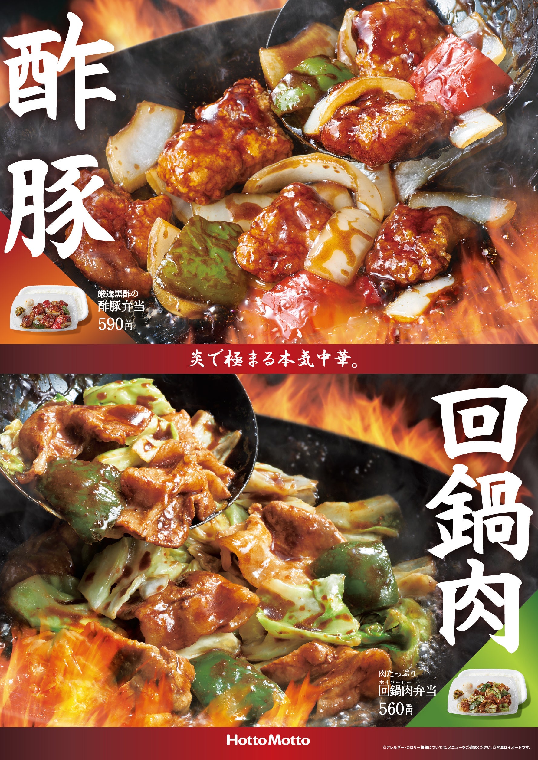 「ほっともっと」中華の定番人気メニューが今年も登場! 2種の黒酢をブレンドした、まろやかな酸味とコク『厳選黒酢の酢豚弁当』590円 “肉が主役”でボリューム満点!『肉たっぷり回鍋肉弁当』560円