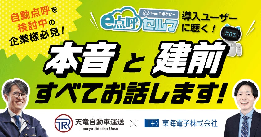 【天竜自動車運送×東海電子】自動点呼機器「e点呼セルフ」導入ユーザーに聴く!本音と建前すべてお話します!11月11日(火)無料ウェビナー