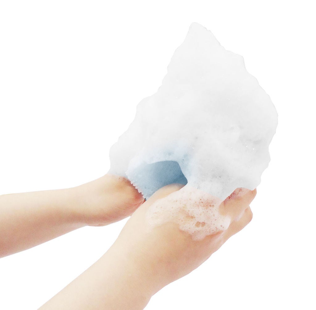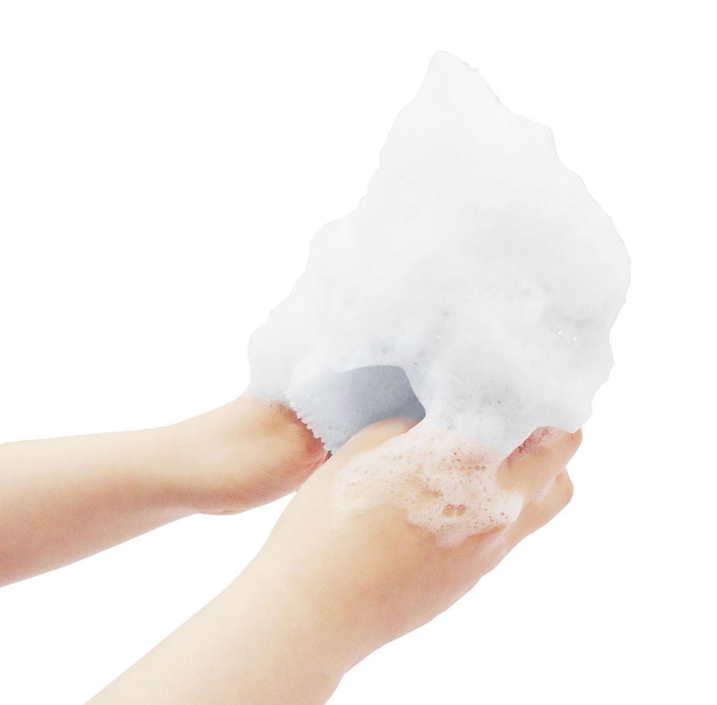 極細繊維ナイロンを使用し、さらに両面仕様のためたくさんの空気を取り込み、ふわふわの泡を生み出します。