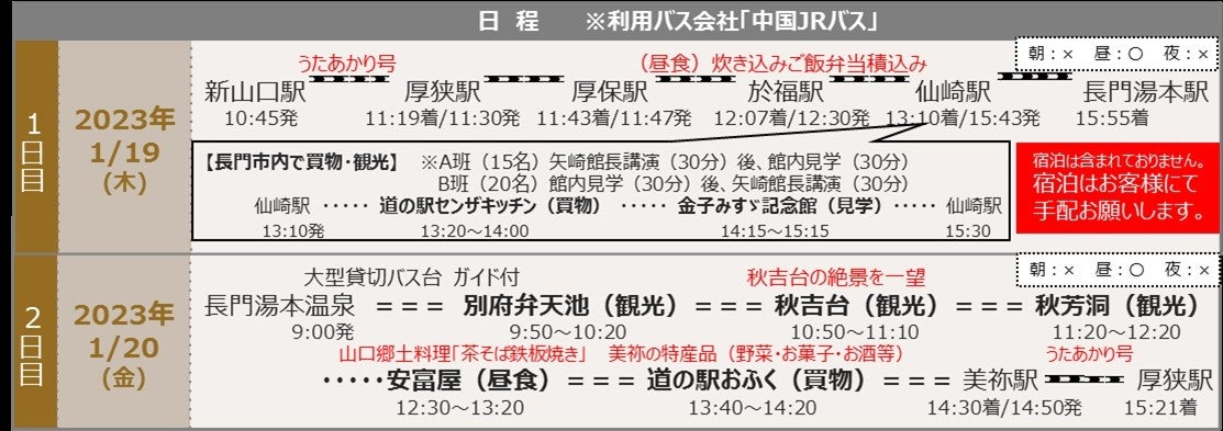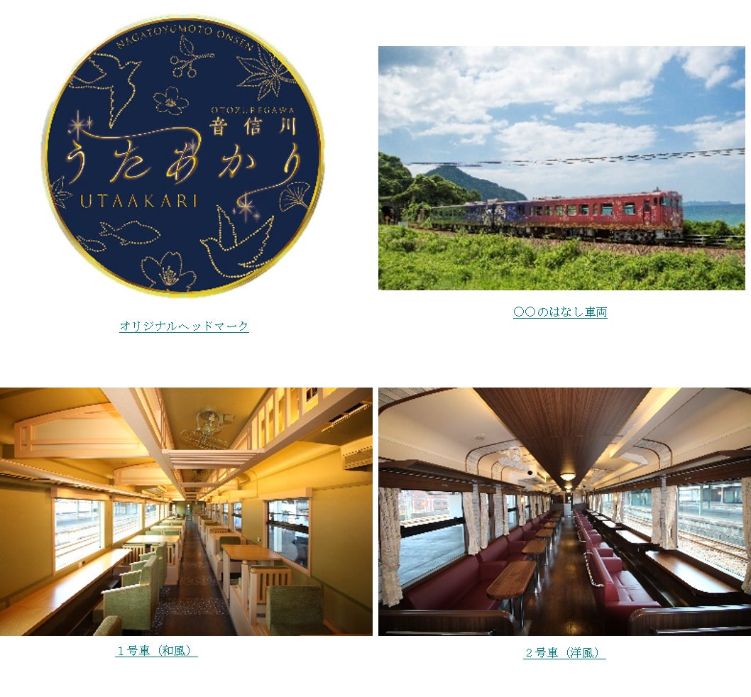 通常山陰線を運行している観光列車「○○のはなし」の車両を特別に美祢線で運行し、美祢線沿線のおもてなしや、長門市出身の童謡詩人「金子みすゞ」のふるさと・仙崎の魅力を存分に体験いただけるツアーを開催いたしますので、「長門湯本温泉うたあかり号」を利用した旅をぜひお楽しみください。- 「長門湯本温泉うたあかり号」運行概要