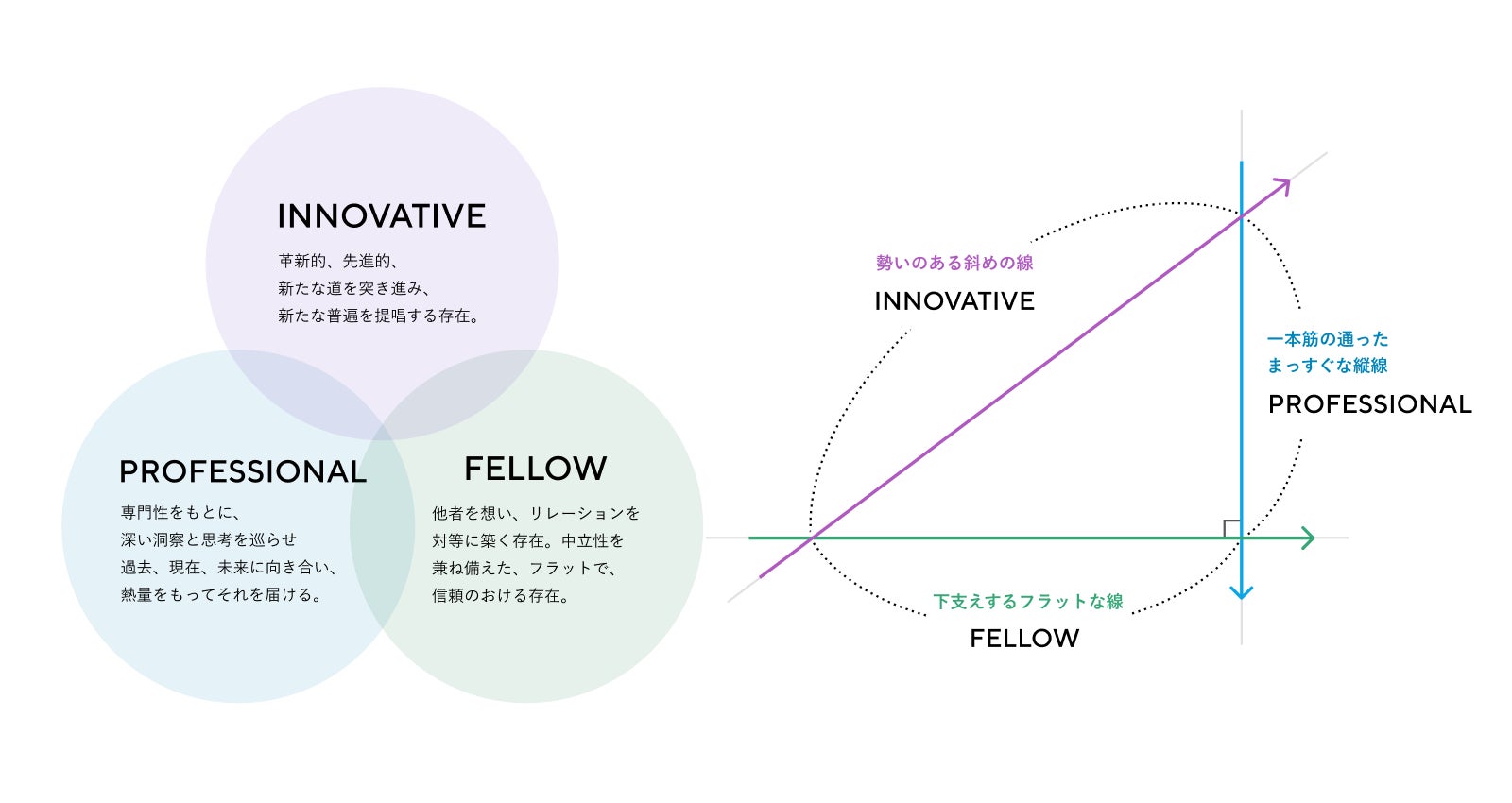 新しいロゴは「Find The New.」をテーマにデザインしました。3本の直線で構成されている三角形は、それぞれの線に「Find The New.」のDNAである「INNOVATIVE」「PROFESSIONAL」「FELLOW」という意味が込められており、それらを組み合わせて表現しています。また、「独自の視点と専門的かつ入念な取材で探求し、すべての生活者の『新たなスタンダード』となり得る情報を、中立的に、かつ熱量を持って、わかりやすくユーザーに届ける」という想いを込めました。