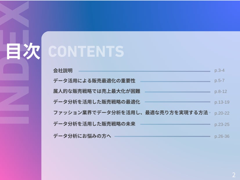 本レポートでは、ファッション業界におけるデータ分析の活用事例を通じて、販売戦略の最適化と売上最大化を実現する方法を紹介しています。